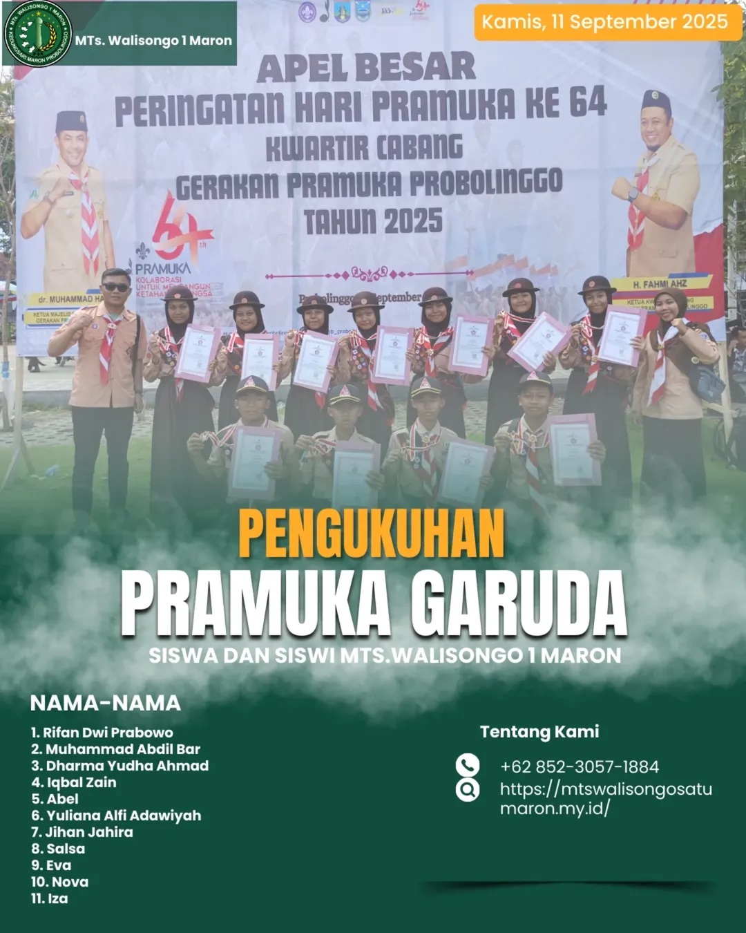Pengukuhan Pramuka Garuda Siswa dan Siswi MTs. Walisongo 1 Maron Tahun 2025